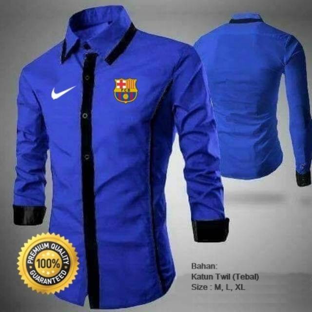 Kemeja Bola Casual Barcelona A Biru