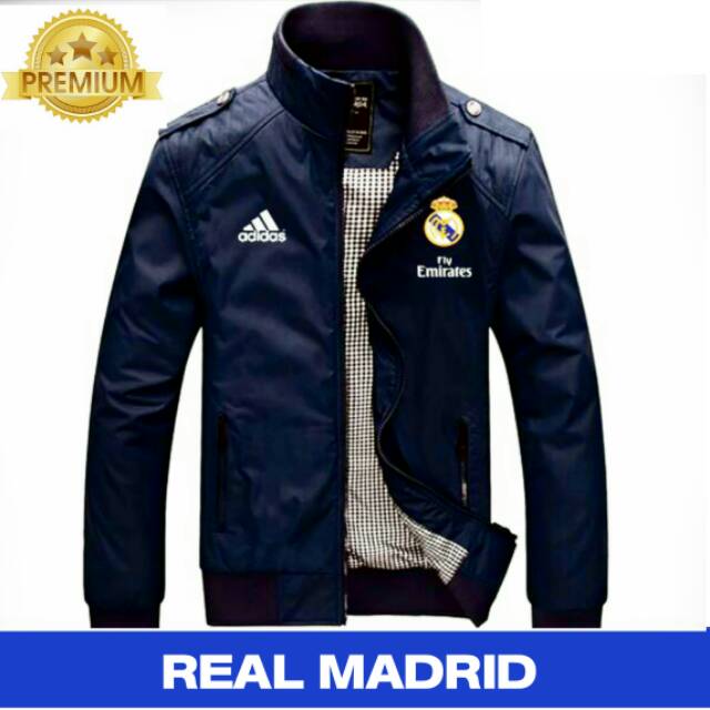 Jaket Pria Cowok Bola Real Madrid Blue Black Biru Hitam