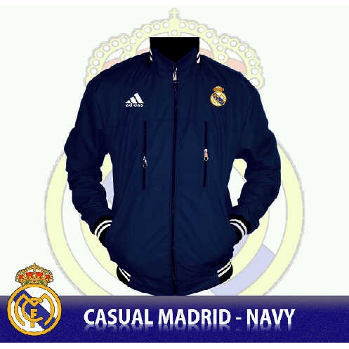 Jaket Bola Casual Real Madrid Biru Navy