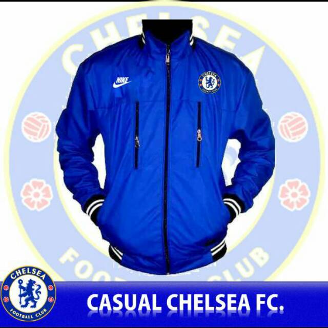 Jaket Casual Klub Sepakbola Inggris The Blues Chelsea Warna Biru Jaket Murah Bahan Parasur Logo Bola